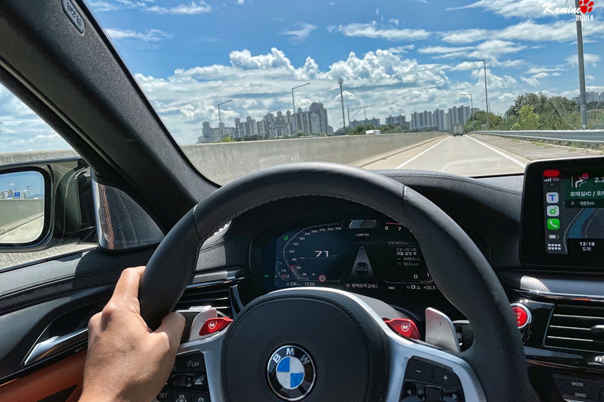 Es ist wirklich schwierig, die Leistung des M5 mit über 600 PS in Worten, Bildern oder Videos auszudrücken. Sobald man das Gaspedal betätigt, wird man so schnell beschleunigt, dass man den Kopf zurücklegt. Plötzlich sieht man den Geschwindigkeitsmesser, der die Y-Zone überschreitet, und ist überrascht.