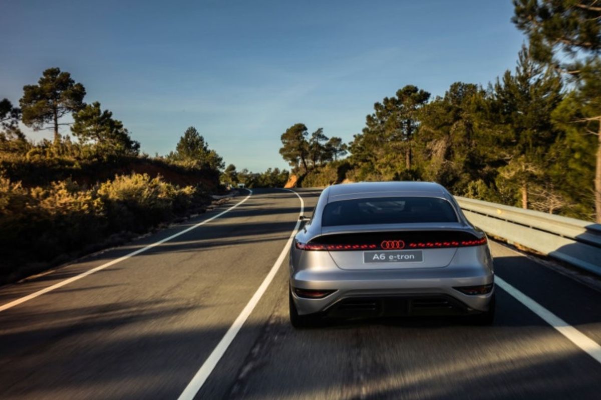 The Audi A6 e-tron concept car is an electric vehicle built on the PPE platform, which is dedicated to electric cars. It features a sportback design with a length of 16.3 feet (4.96 m).