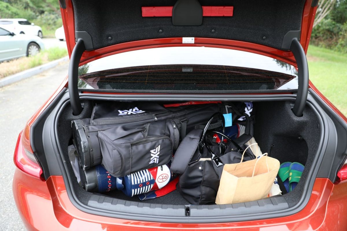 Most larger imported mid-size sedans struggle to accommodate four players, so I recognize that the BMW 320i offers ample trunk space for its size.