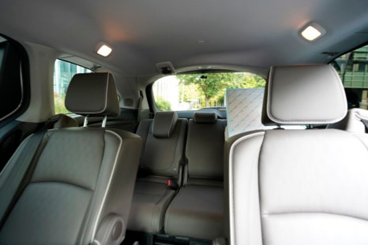 De plus, grâce à la fonction de communication cabine, la voix de l'avant est transmise aux passagers des deuxième et troisième rangées via des haut-parleurs et des écouteurs.