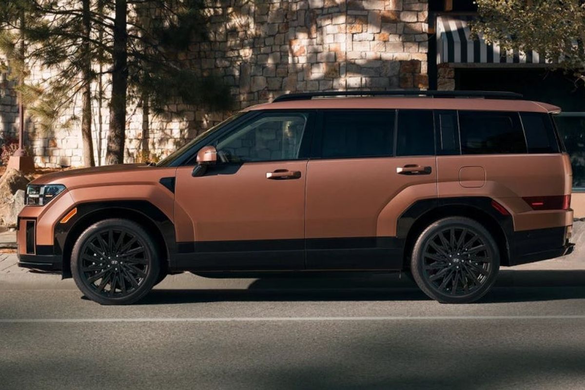 Il profilo laterale non ha subito grandi cambiamenti, essendo un restyling, ma appare più raffinato rispetto al Santa Fe. Parafanghi, minigonne laterali, finiture laterali e paraurti posteriore sono in nero opaco. La parte posteriore, con i fari verticali che si estendono dai lati, offre una migliore visibilità rispetto al Santa Fe, che ha i fari posizionati più in basso.
