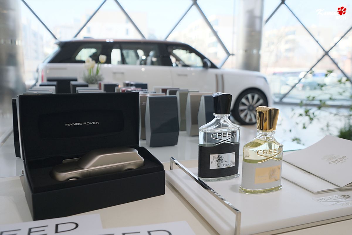 В выставочном зале Ханнам гости могли комфортно ознакомиться с моделями Range Rover, Range Rover Velar, Range Rover Sport и Defender, а также насладиться ароматами от престижного парфюмерного бренда "Крид" (CREED), который существует уже 260 лет.