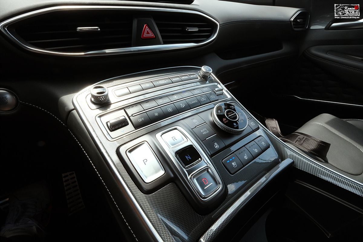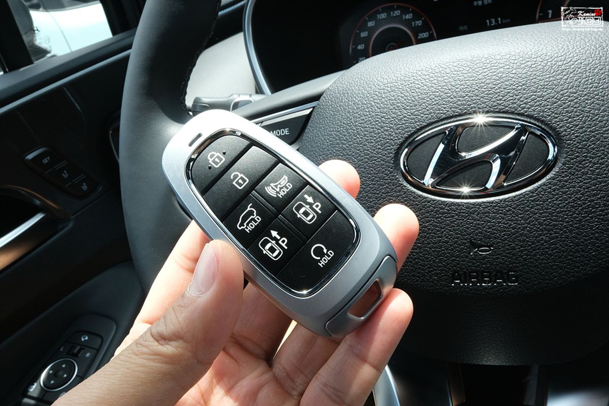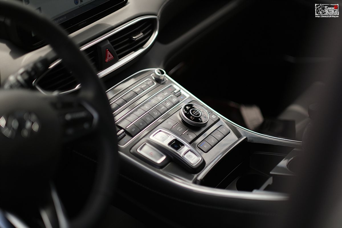 Хотя это не мой стиль, но у нового Santa Fe есть кнопочный электронный переключатель и функция удаленной парковки...