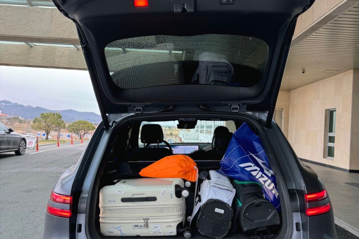а в оставшееся пространство разместил 2 чемодана и сумку для гольфа.