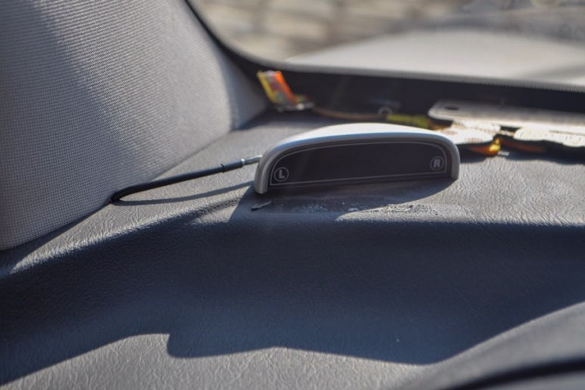 If your vehicle has aftermarket rear sensor monitors like mine, you can gently pry them off using a tool like a spatula and twist them off.